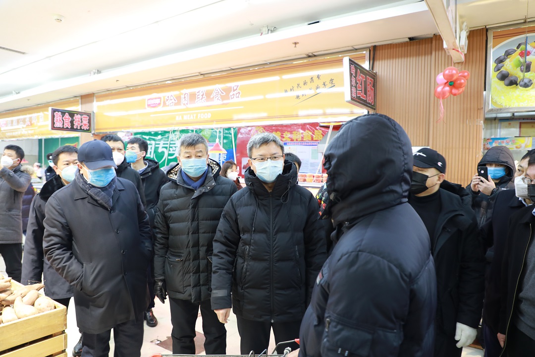 张金丰一行先后到绥棱县进城检测卡点、疫情防控指挥中心、确诊病例居住小区、重点超市等地察看疫情防控工作,详细了解联防联控、指挥调度、市场供应保障等情况。